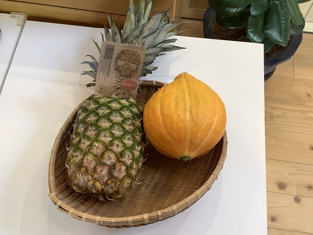 35ファームのかぼちゃ、なす・深ねぎ・にんじん・油揚げが入っています。