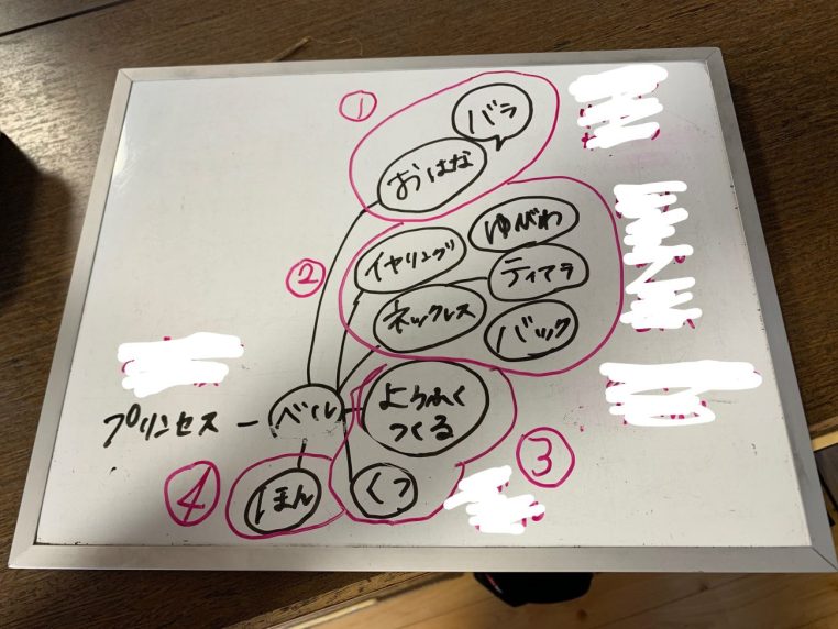 プリンセスのベルを作ることが決まると、次はなにをどの材料で作るか話し合います。