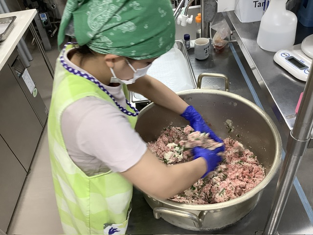 量がとても多く、給食室で1番大きなお鍋で一生懸命混ぜました!