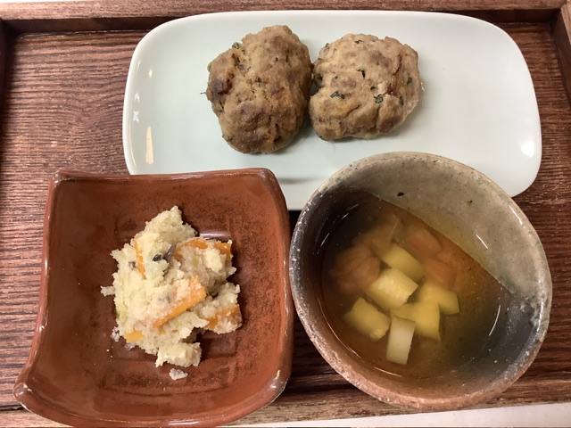 おから、にんじん、きくらげ、薄揚げ、深葱が入ります。昆布とかつお節でとった出汁もいれ、炒め煮にします。