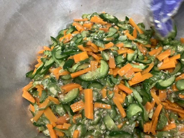きゅうり、にんじん、35ファームのオクラをいれました。