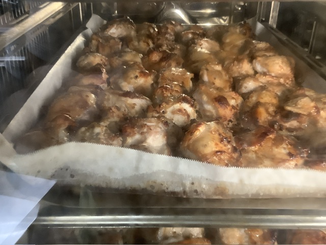 一真の鶏肉に、給食室お手製の醤油麹を一緒に漬け込みます。醤油麹は、米麹と濃口醤油を混ぜるだけ。とても簡単に作れて、いろいろな料理に使えますよ♪
