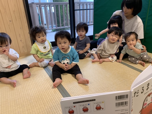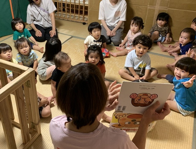 喃語や言葉の獲得が著しいこの乳幼児期に様々な絵本を通して、たくさんの興味に沿った絵本や季節・行事を感じられる絵本の読み聞かせの時間を設けていきたいと思います。
