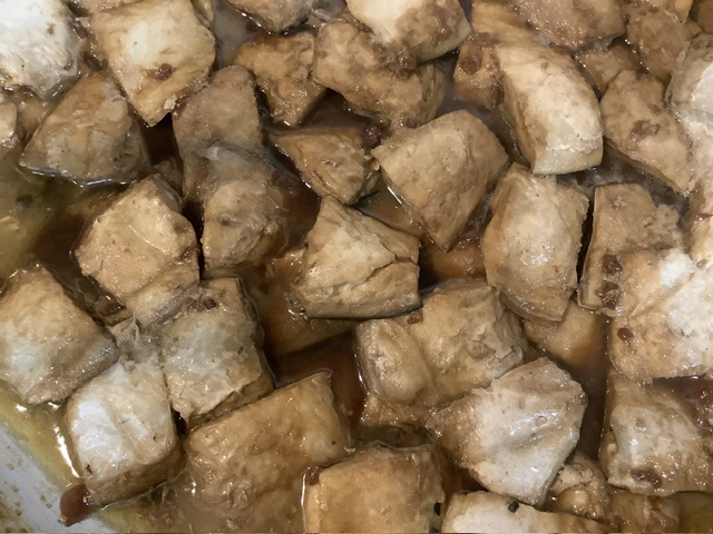 たっぷりの生姜、たたいた梅を酒、みりん、濃口醤油、きび糖、水で煮ました。生姜や梅の果肉を入れることにより、魚の臭みがとれ、柔らかく煮えました。こどもたちにもとても好評で、お代わりもあっという間になくなりましたよ!