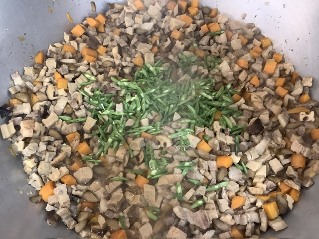 豚肉・ごぼう・にんじん・れんこん・高野豆腐・干し椎茸・いんげんを煮込んでいます。