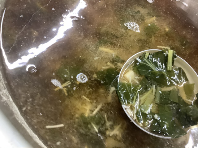 今日は35ファームの小松菜・えのきたけを煮込んだみぞれ汁を作りました。
