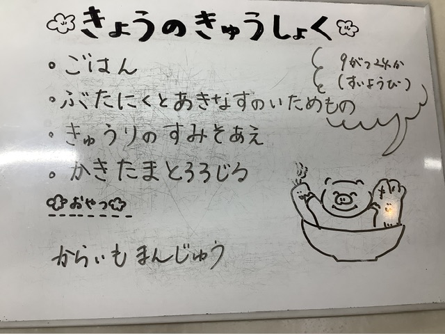 かきたま汁はこども達に大人気メニューです。出汁の旨み、卵のフワフワ食感がたまりません。