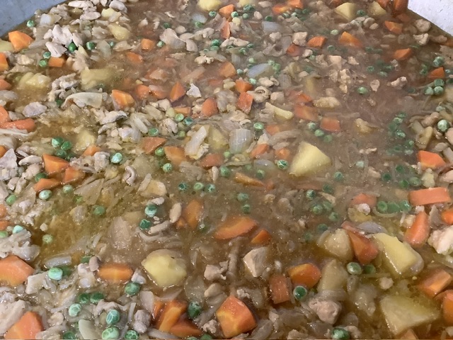 鶏肉、じゃがいも、にんじん、玉ねぎ、しらたきをじっくり煮込んで作ります。