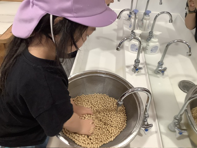 普段から自分たちでお米研ぎもしているこども達。丁寧に、上手に大豆を洗っていました。