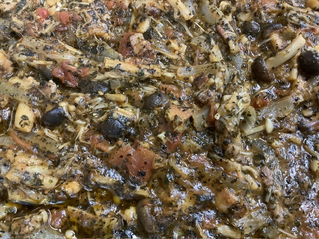 オリーブオイルでにんにくを炒め、玉ねぎ・南州農場のベーコン、ぶなしめじ・えのきたけ・エリンギのたっぷりのきのこが入りました。