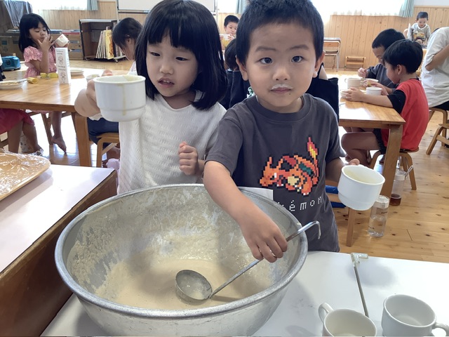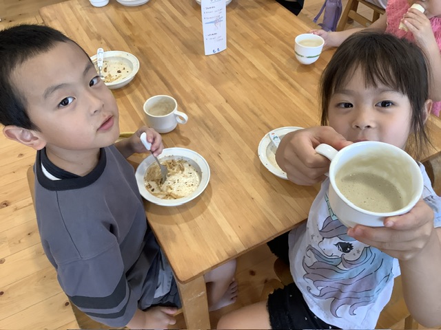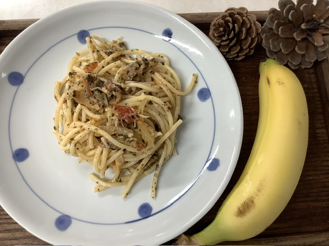 そして今日は、バナナ・パイン・りんご・みかんで作ったフルーツミックスジュースも提供しました。スパゲッティもジュースも大人気!こども達が何度もおかわりをしてくれました。