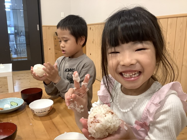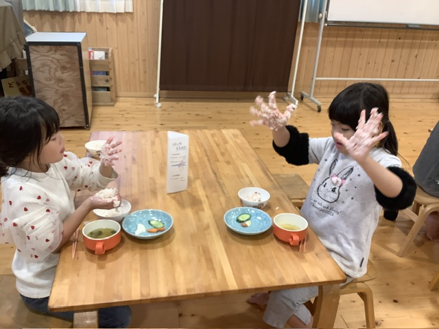 さくら組の子ども達は、自分でおにぎりをにぎってみました。