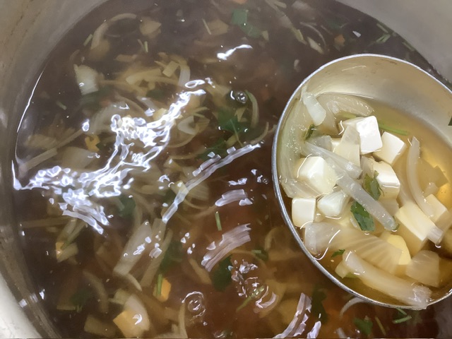 玉ねぎ、みつば、きぬごし豆腐が入りました。
