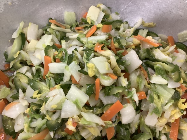 白菜・にんじん・きゅうりを、酢・きび糖・麦味噌で作った酢味噌で和えました。