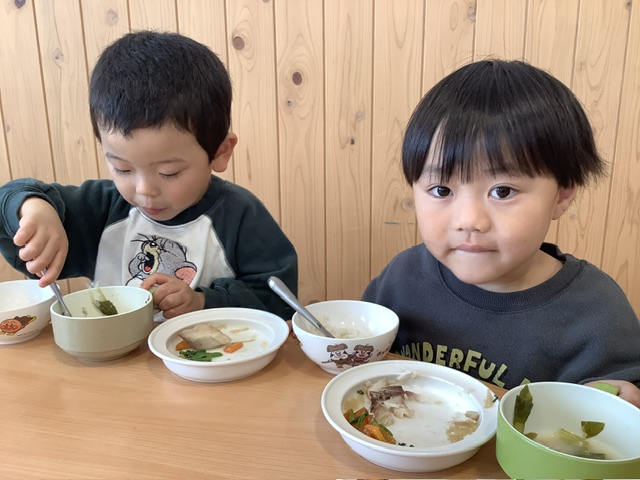 今日は一段と冷え込んだ朝でしたね。寒さにまけず、元気に園庭を駆け回るこども達を見ていると、こちらも元気をもらえます。栄養豊富な冬野菜をたくさん食べて、元気な身体づくりをしていきたいと思います🧑🏻‍🍳✨