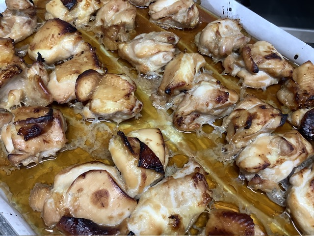 はちみつに漬け込むことで、鶏肉が柔らかくなり、ニンニクの風味が食欲をそそる一品に仕上がりました。