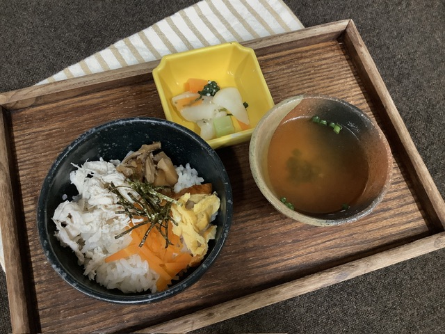 鶏肉の旨みが溶け出ていて、サラサラと食べやすい鶏飯はこども達にも大好評でした!