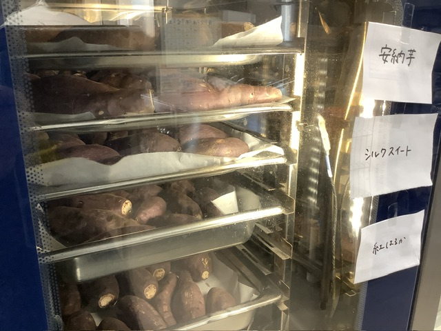 甘く仕上げるコツは、さつまいもに含まれるデンプン「β-アミラーゼ」という酵素の働きにより変化することで甘くなるそうです。酵素が最も活発に働く温度帯が70〜60℃。芋の内部温度がこの60℃〜70℃の範囲に長く留まるように、低温でゆっくりじっくりと加熱することが、甘みを最大限に引き出す秘訣なんだそうです。