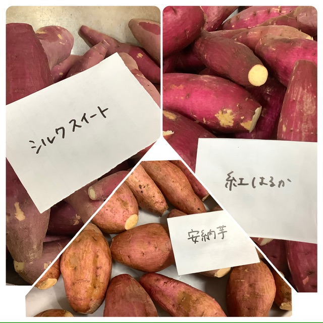 ねっとりして甘みが強い安納芋、シルクのようできめの細かいさっぱりとした甘さのシルクスイート、ホクホクと甘みがある紅はるか、それぞれ違う美味しさでした!