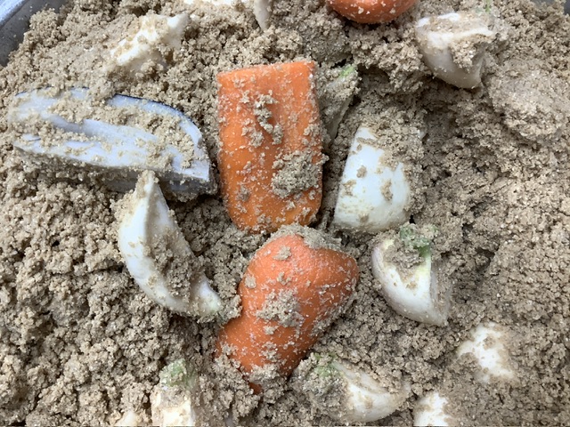 レンコン、にんじん、カブを給食室手作りのぬか漬けに漬けこみました。