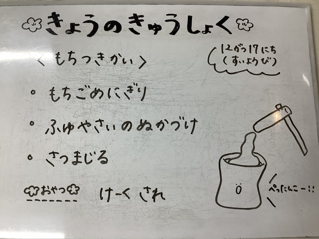 きな粉とあんこをトッピングしましたよ。おにぎりにしたことで食べやすく、自分でトッピングできるのが嬉しい様子でした♡おかわりをする子がとても多かったですよ。