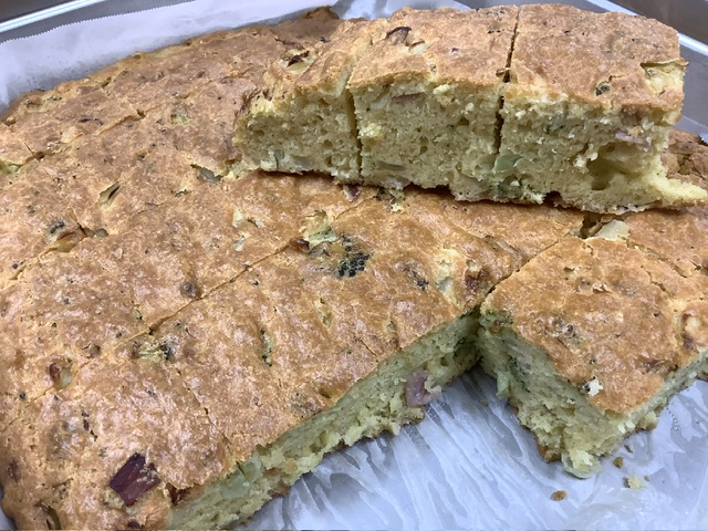 ハムやチーズの塩気もきいて、ふわふわの美味しいケークサレに仕上がりました。