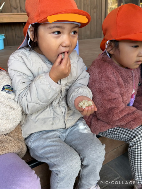 試食で使用したもち米は、さくら組がのはら園で育てたものです。自分達で育てたお米を食べる経験は、私自身も初めてでした!こども達と一緒に、感謝の気持ちを感じる事が出来ました。