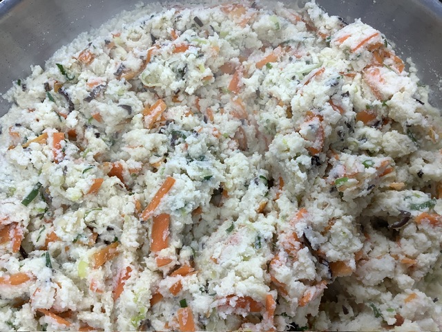 長ネギをしんなりするまでよく炒め、人参、黒きくらげ、油揚げ、おからを入れて、出汁、調味料を加えて、水分を飛ばします。