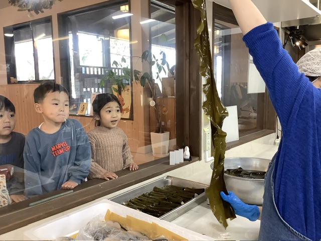 昆布巻きの下準備時は、こども達も見にきてくれました。
