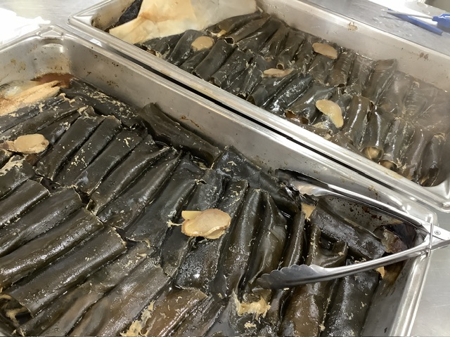 大きな昆布で鯖を巻き、ひとつひとつ丁寧に給食室で手作り!その数なんと160本!