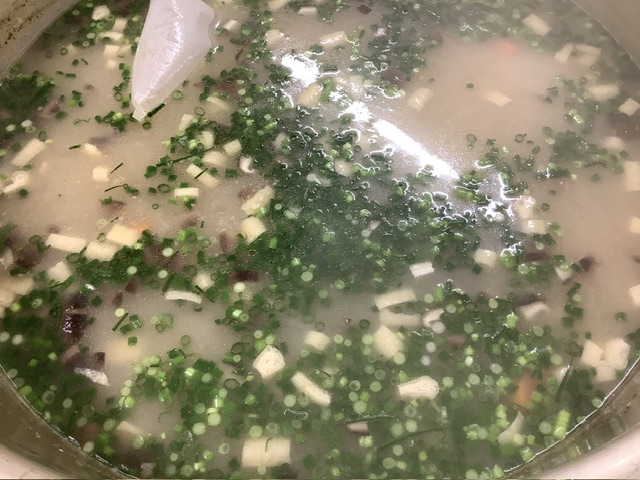 にんじん、椎茸、薄揚げ、35ファームの里芋、小ネギが入り、麦味噌をとかして仕上げました。