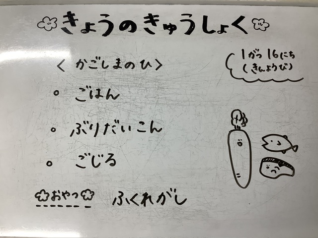 こども達は、“焼いた”魚の方が食べ慣れているので、ぶり大根はおかわりをする子が普段より少なく感じました。それでも“このお魚美味しい”の言葉もいただき、嬉しかったです。
