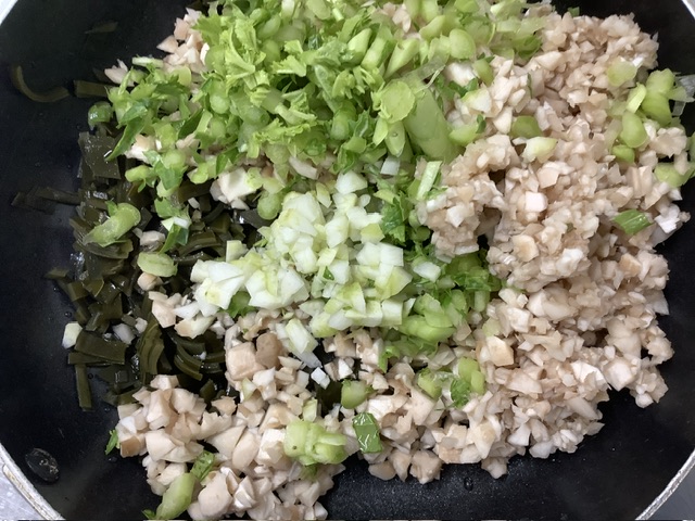 大根葉は、ごま油で炒め、塩昆布で炒めました。