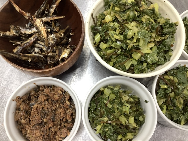 ふりかけには、大丸鰹パック、大根葉、出汁をとった昆布、椎茸のじくを入れて作りました。隠し味に“柑橘麹”を加えました。爽やかな香りが、食欲を掻き立てます。