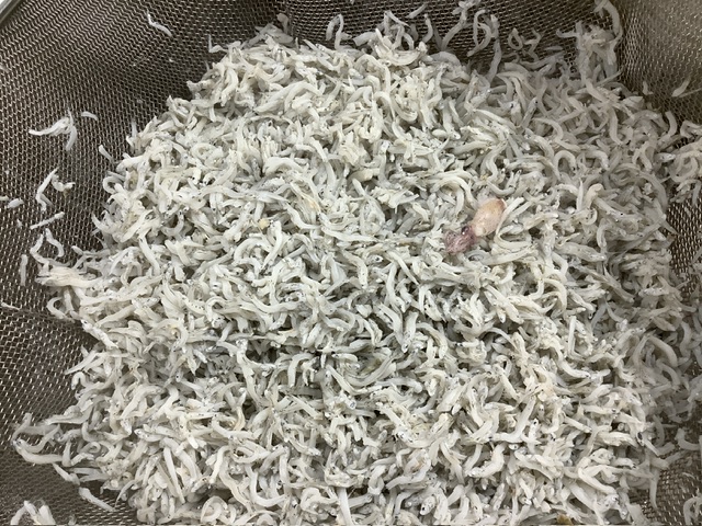 スチームした春菊、ごま油でカリカリ炒めたしらすぼし、茹でたにんじんを豆乳マヨネーズで和え、最後にたっぷりのすりごまを入れました。