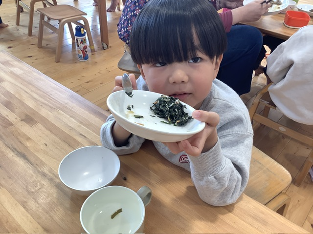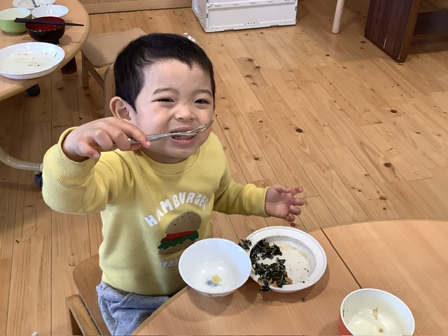 こどもたち食べてくれるかな?と少し心配でしたが食べず嫌いな子が多く、「一口だけでも〜」と勧めると意外と美味しいことが分かり、パクパク食べる姿が見られました!