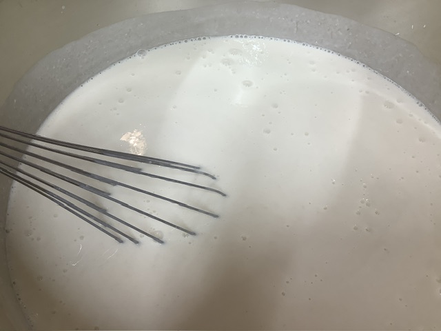 甘酒・豆乳・はちみつ・ヨーグルトを混ぜると、優しい甘さでさっぱりと飲みやすい甘酒ヨーグルトになりました。