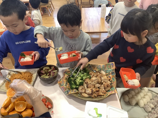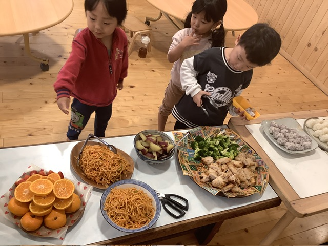 こどもたちがランチルームに入ってくると、普段とは違う雰囲気の驚き、盛り付けられたお料理をみて歓声と笑顔が溢れました。
