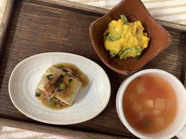 豆腐のみではあっさりと優しい味ですが、にんにくやベーコンと組み合わせることでご飯にも合うメニューに大変身!こども達もおかわりまでよく食べてくれました!