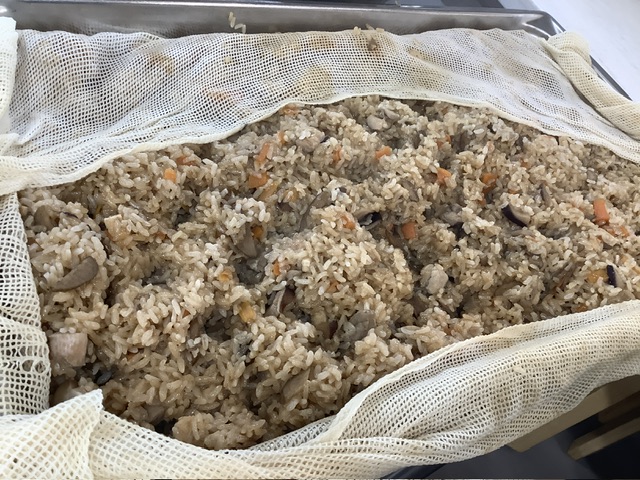 出来上がったおこわの香りはとても良い香り、こどもたちが遊んでいる園庭にも広がりました。