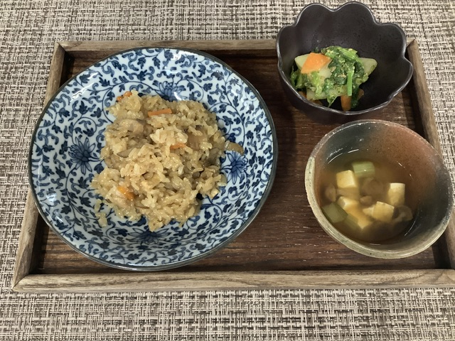 具材は、鶏もも肉、にんじん、油揚げ、蒸し煮をしたごぼう、干し椎茸です。