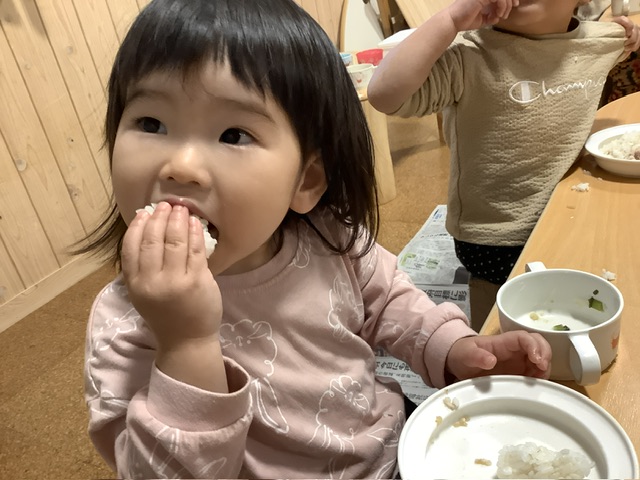 「梅干しが酸っぱいよ〜」と言いながらも、ご飯が進むからか、何度もおかわりをする子が多かったです。