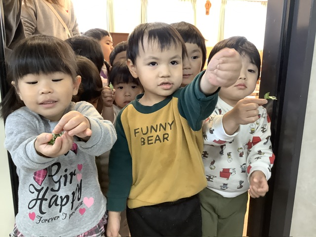 先週から、こども達によもぎを集めるお手伝いをしてもらっています。今日はゆり組のこども達がよもぎをもってきてくれました。