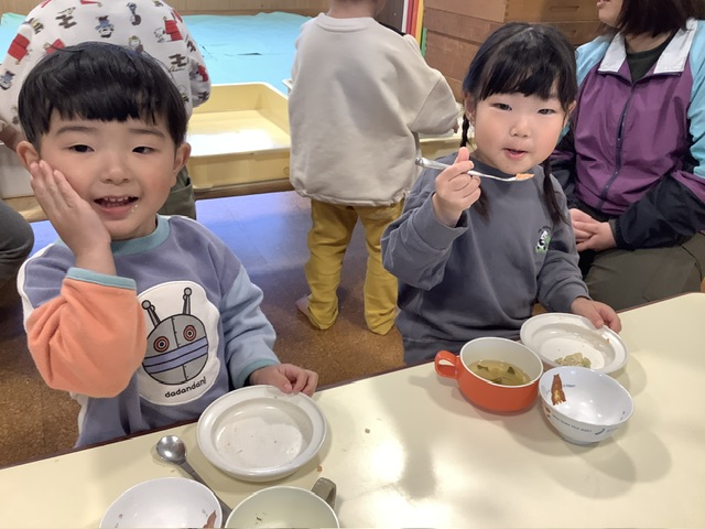 シンプル料理ですが、年長のリクエストメニューに上がるほど大人気メニューです。