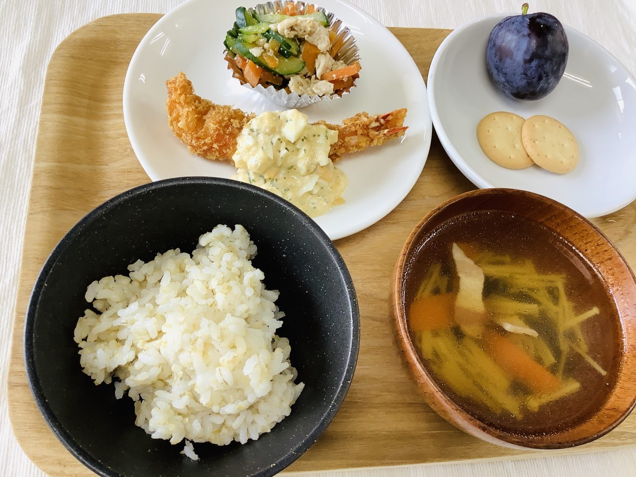 今日のメニューは“エビフライ〜手作りタルタルソース〜”“鶏ときゅうりのゴマ風味和え”“きくらげの中華スープ”でした。
