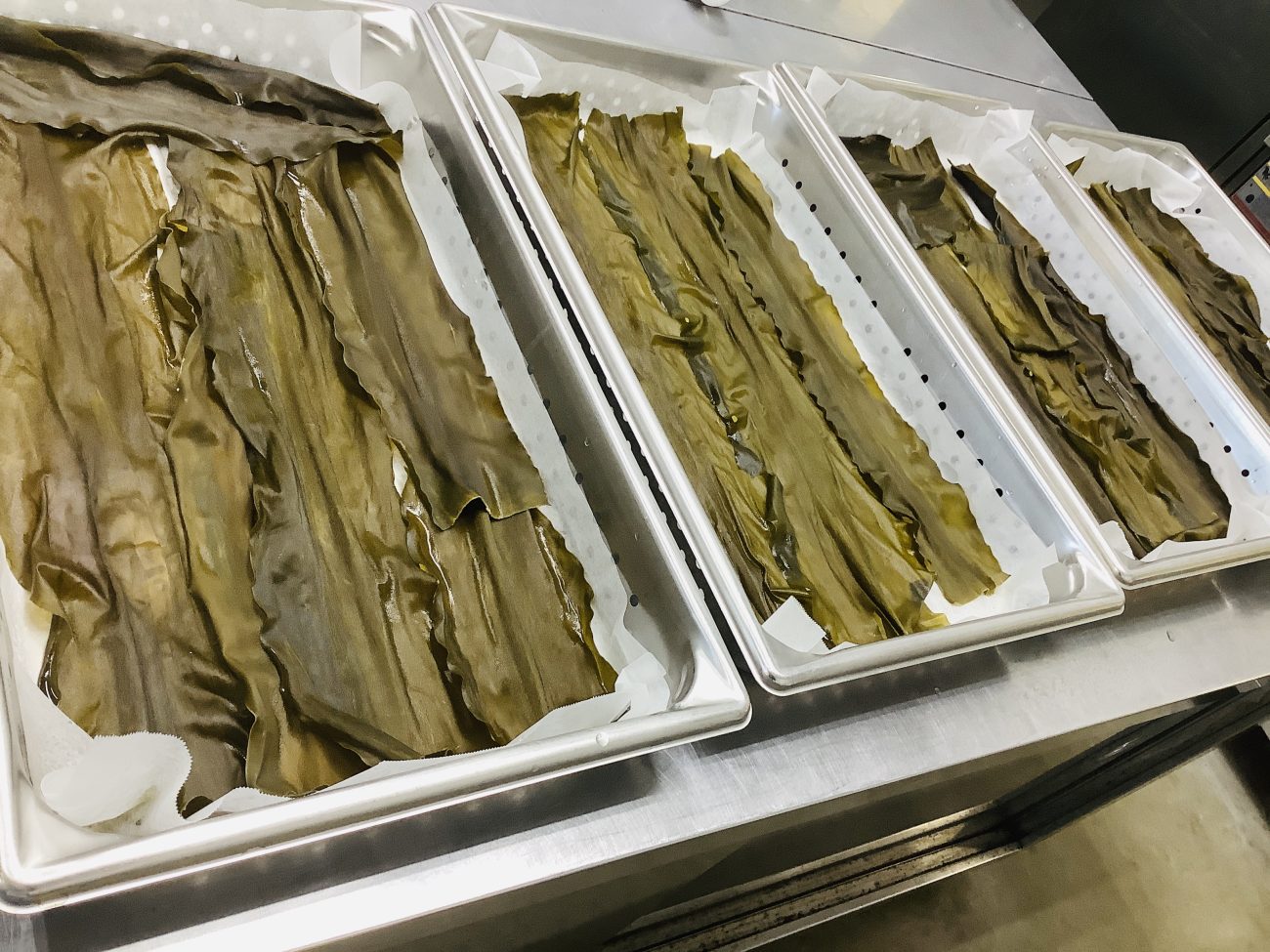 昆布を軽く戻して広げ、その上に酒と塩で下味を付けたさわらを置きます。このように昆布を敷くことで、昆布の風味が染み込み、より深い味わいになります。刺身なども昆布締めをすると、深い味わいになるほか、日持ちが長くなる効果もあります。