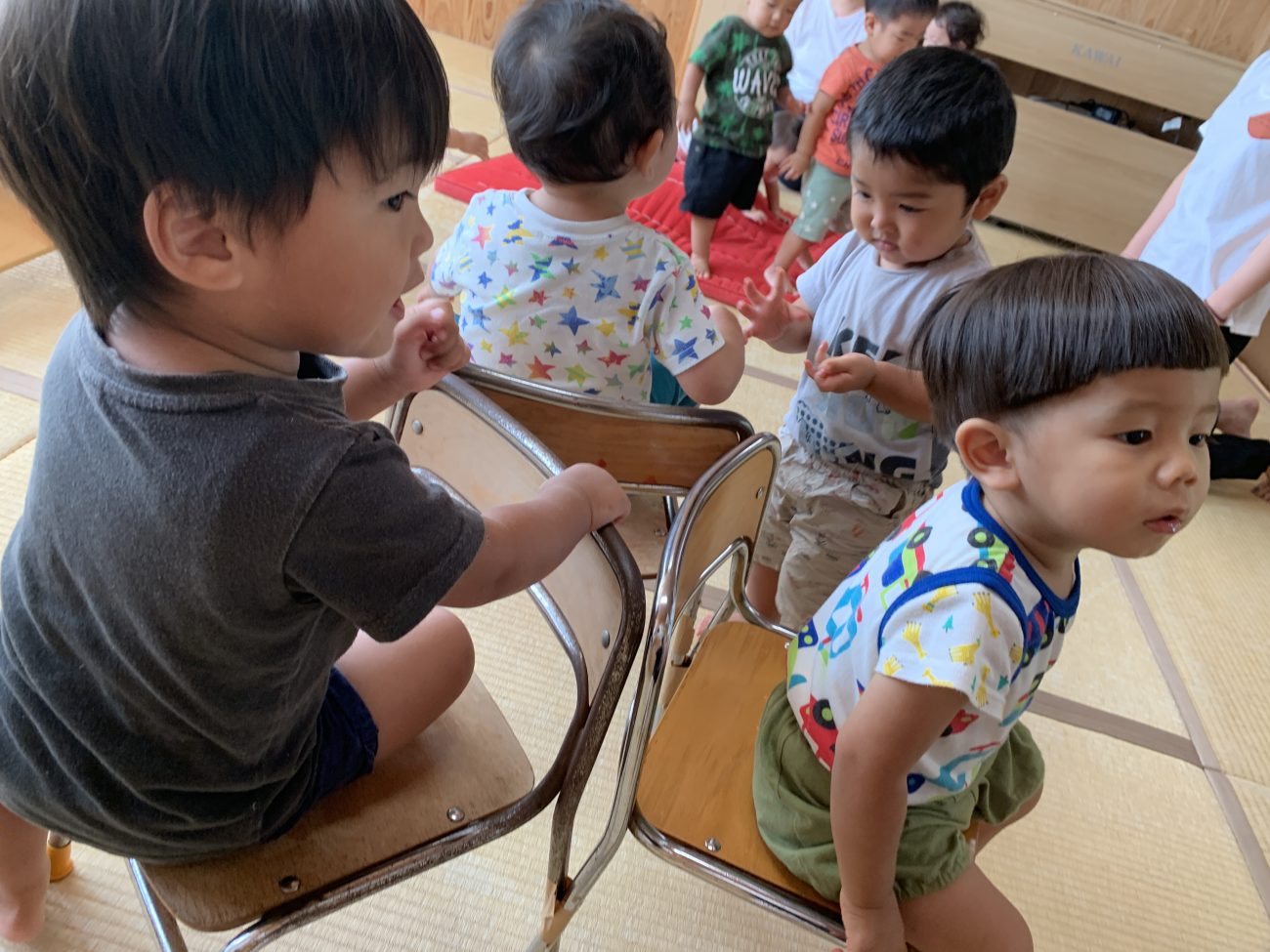 最初は人数が多いと中に入らず見ていることが多かった子も回数を重ねていく中で自分から積極的に参加する姿が多く見られました!