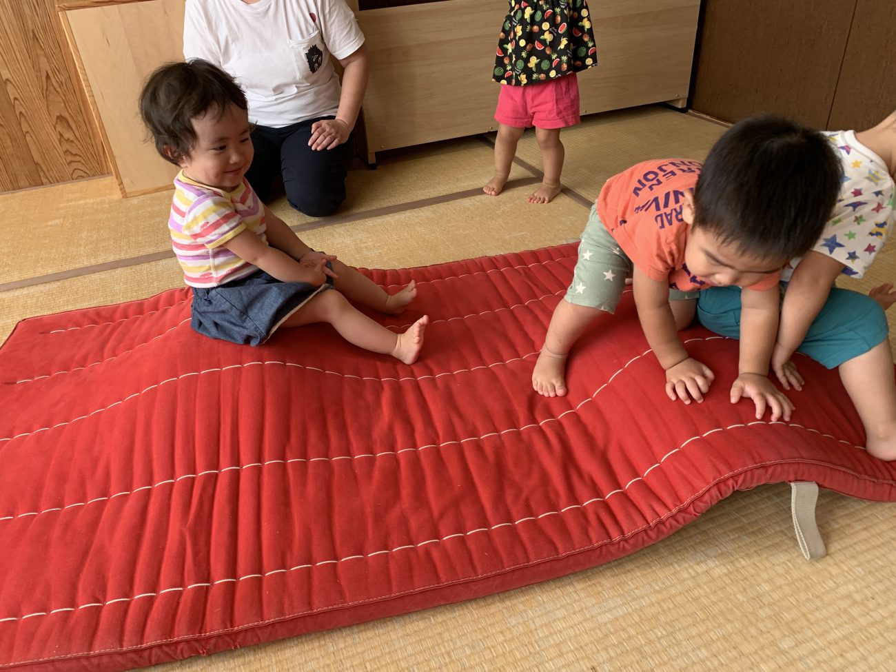 自由遊びの中で行ったので「こうしたほうがいいよ」「こっちの方がいいんじゃない?」とは伝えず、近くで見守りを行いました。