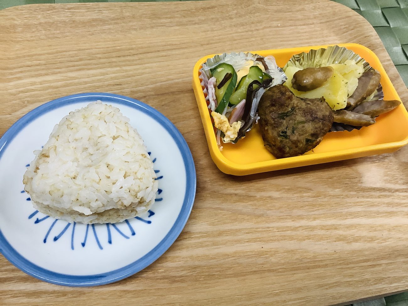 今日メニューは“大葉ネギみそハンバーグ”“春雨の酢の物”“じゃがいもとウインナーのオーブン焼き”でした。