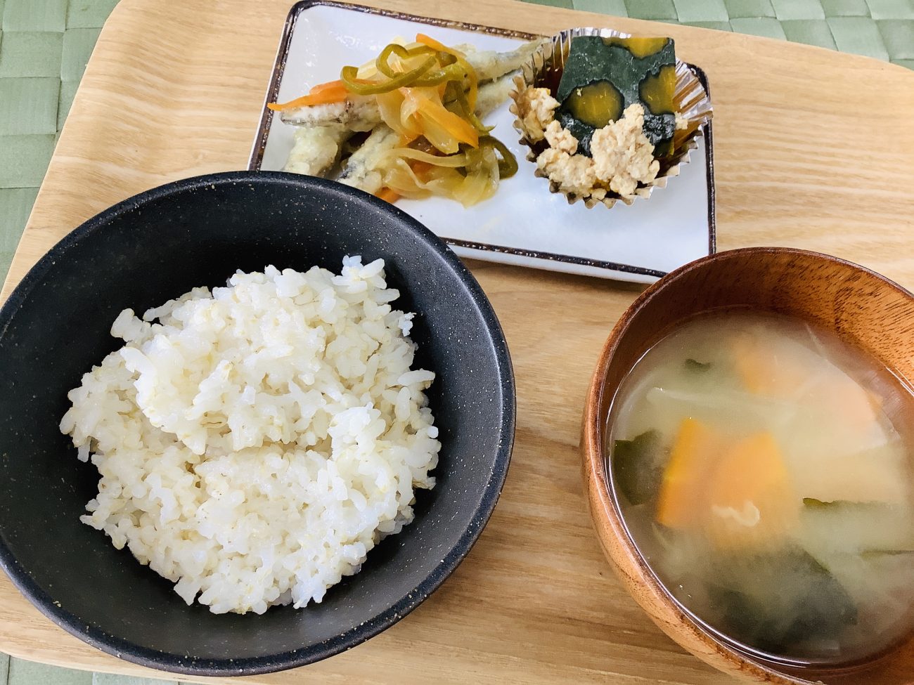 今日のメニューは“きびなごの南蛮漬け”“カボチャのそぼろあん”“ワカメと玉ねぎのみそ汁”でした。